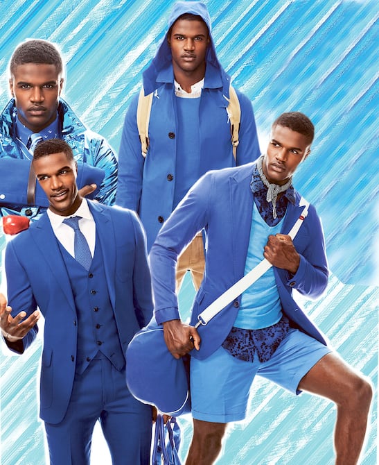 En la última década, el color rosa se ha vuelto tan popular que, prácticamente, perdió toda su potencia. No obstante, ha surgido una nueva opción cromática para los hombres: el azul brillante, eléctrico y resplandeciente, muy alejado de los trajes azul marino y las camisas azul claro de la ropa para caballero tradicional.