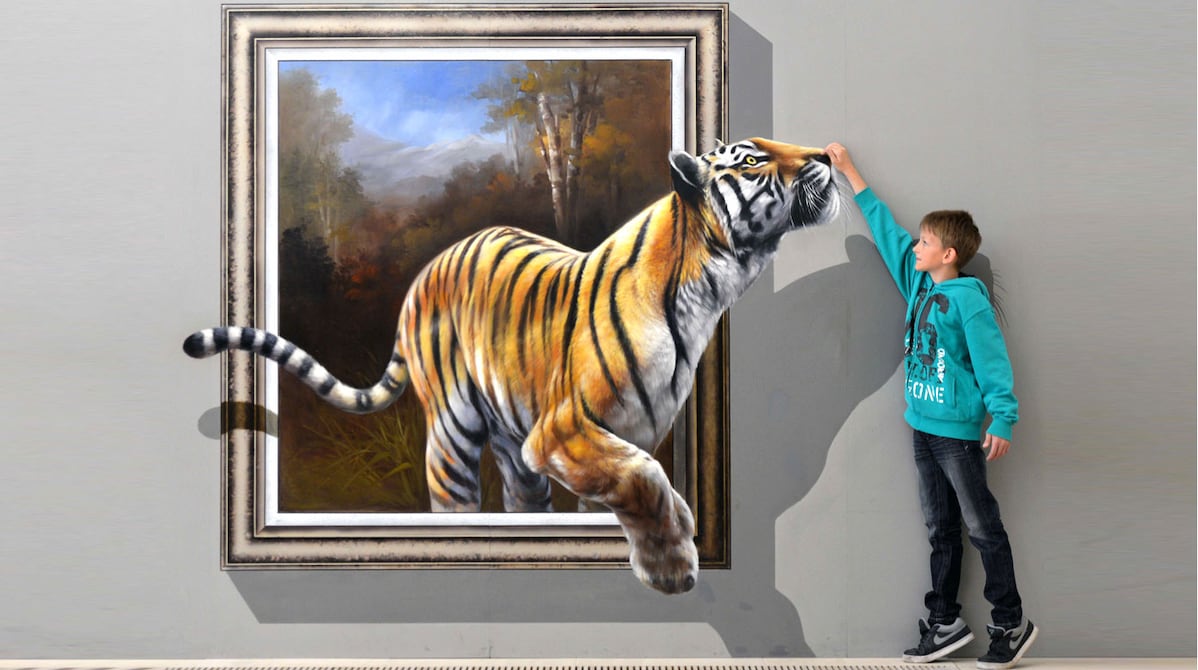 Fotografiarse dando caza a un dinosaurio o besando a un tigre suena peligroso, pero resulta posible en la muestra Du bist die Kunst (Tú eres el arte), presentada en Chemnitz, Alemania.
