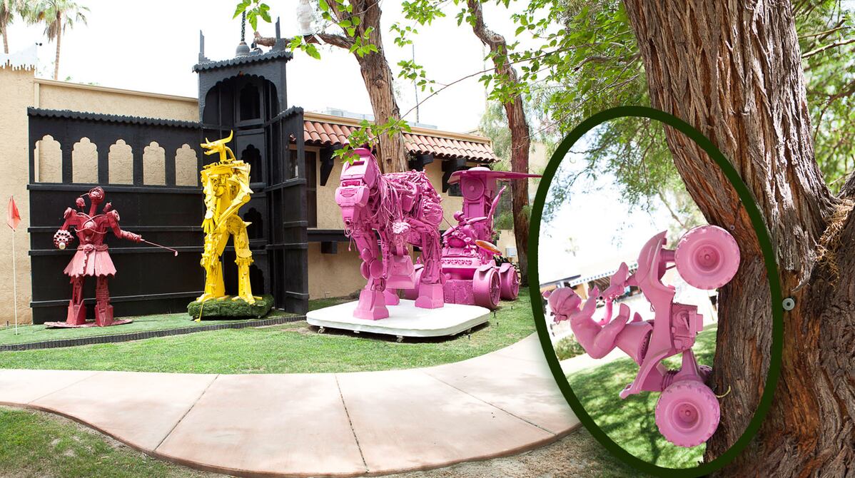 En Estados Unidos un hombre exhibe en su patio figuras gigantes con piezas recicladas.