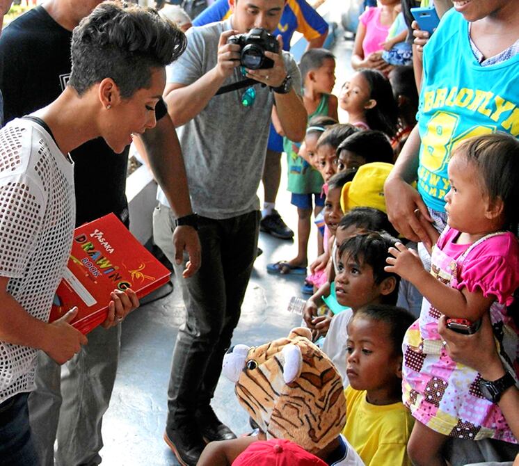 La cantante Alicia Keys visitó una base de la fuerza aérea filipina ayer para llevar alegría, crayones y libros para colorear a niños evacuados por el tifón Haiyan.