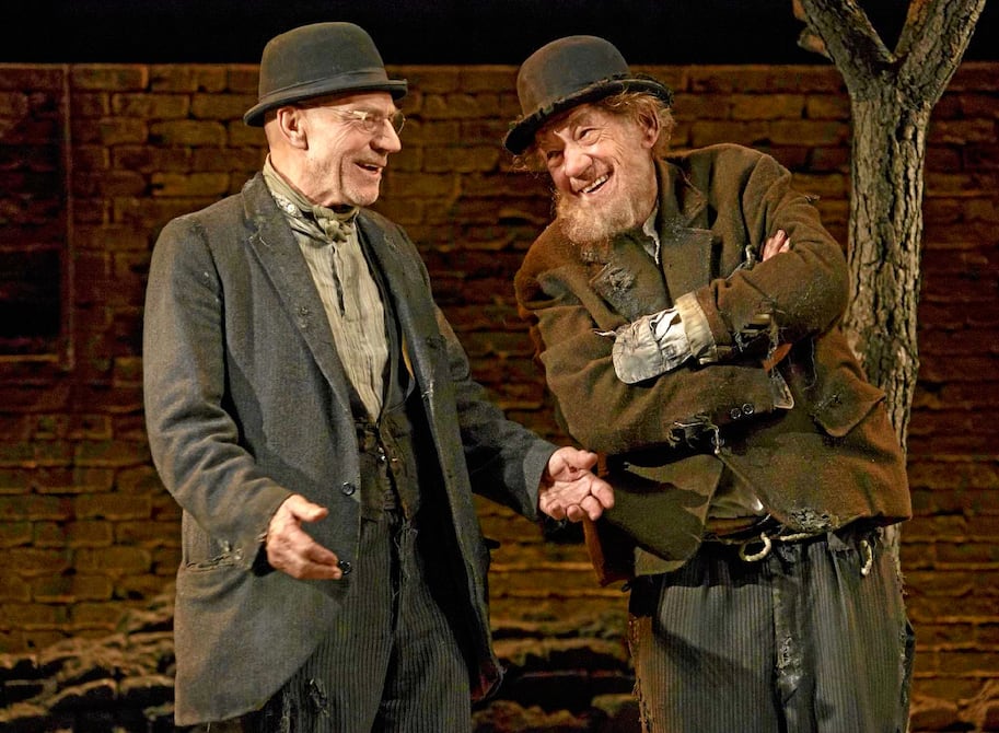 Patrick Stewart (i) e Ian McKellen en la obra de Samuel Beckett, Esperando a Godot.