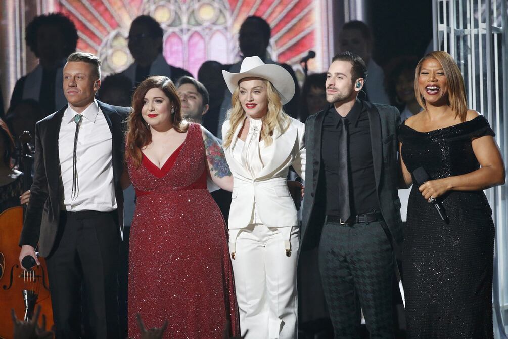 La entrega de los Grammy, la noche más importante de la industria musical en Estados Unidos, se convirtió el domingo en el gran día para 34 parejas, cuando Madonna y otras estrellas de la música presidieron una boda masiva de celebración del matrimonio gay.