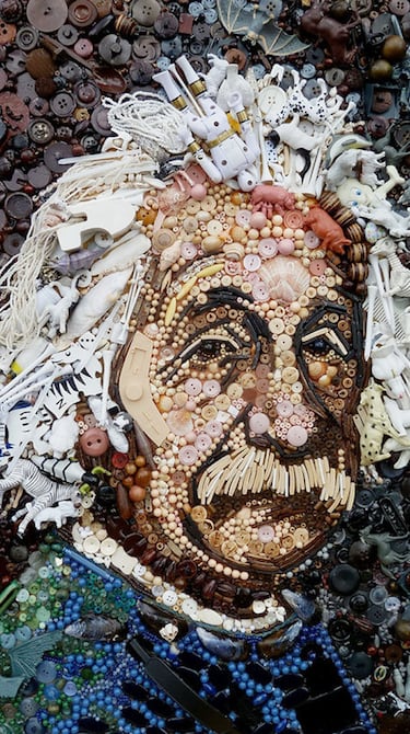 La artista británica Jane Perkins emula famosas obras de arte y retratos a base de objetos, alimentos y hasta desechos. Entre las piezas de Perkins destacan sus versiones de la Mona Lisa, Albert Einstein y la reina Isabel.
