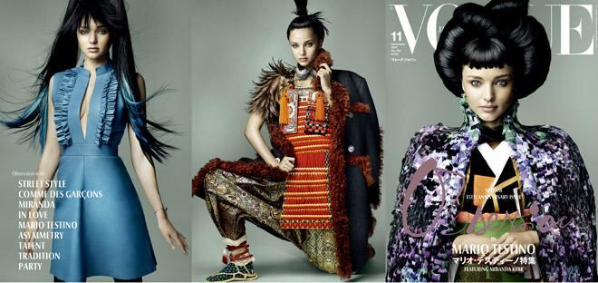 La modelo australiana Miranda Kerr se ha vestido de "geisha" y ha posado frente al objetivo del fotógrafo Mario Testino para protagonizar la portada del número de noviembre de Vogue Japón, con la que la edición nipona celebra su 15 aniversario.