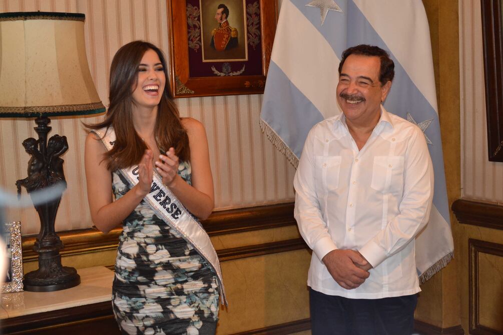 El alcalde de Guayaquil, Jaime Nebot, recibió este viernes a Paulina Vega, actual Miss Universo que se encuentra en el país para cumplir una serie de actividades por las fiestas de cantonización de Machala (El Oro).