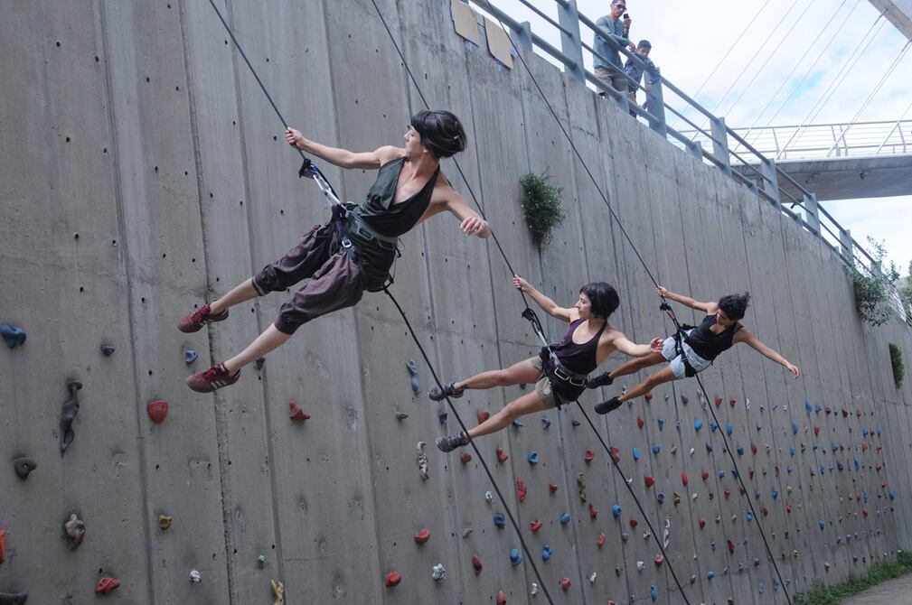 Tres bailarinas combinan el baile con la práctica de la escalada en el parque Cumandá.