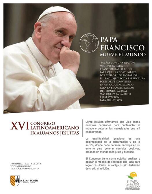 Este miércoles comenzará el XVI Congreso Latinoamericano de Exalumnos Jesuitas, que busca analizar y aplicar el modelo de liderazgo del papa Francisco para lograr resultados estratégicos sin distinción de credo ni religión. Este se desarrollará en el Bankers Club, de Guayaquil, hasta el 13 de noviembre.