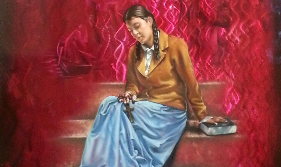Las obras participantes del II concurso de artes plásticas ‘Narcisa, mi inspiración’ se exhiben en el santuario de santa Narcisa de Jesús, en Tomás Martínez y Eloy Alfaro, en Nobol. Buruc Mero Sarmiento ganó el primer lugar con su pintura (foto). (I)