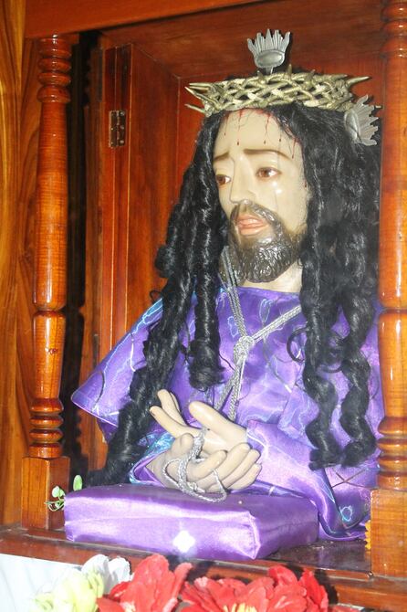 Moradores de la parroquia Colonche (Santa Elena) se muestran sorprendidos porque la imagen del Señor de las Aguas, patrono de la localidad, habría derramado lágrimas.