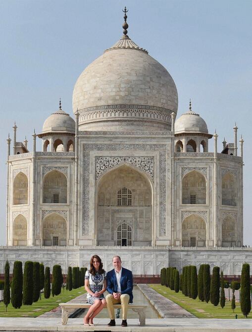 El duque y la duquesa de Cambridge evocaron recuerdos nostálgicos sentados en el mismo banco de mármol frente al Taj Mahal donde la ya fallecida madre del príncipe Guillermo, la princesa Diana, posó sola para una memorable foto en 1992.