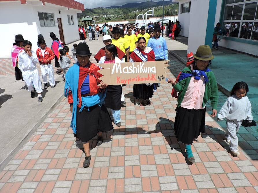 Las madres de familia de los 25 grados de la Unidad Educativa del Milenio Pueblo Quisapincha lucieron sus mejores trajes, blusa blanca, anaco, bayeta y sombrero, para hacer su representación como madrinas en la inauguración del torneo deportivo de padres de familia que se realizó el pasado viernes en el plantel educativo.