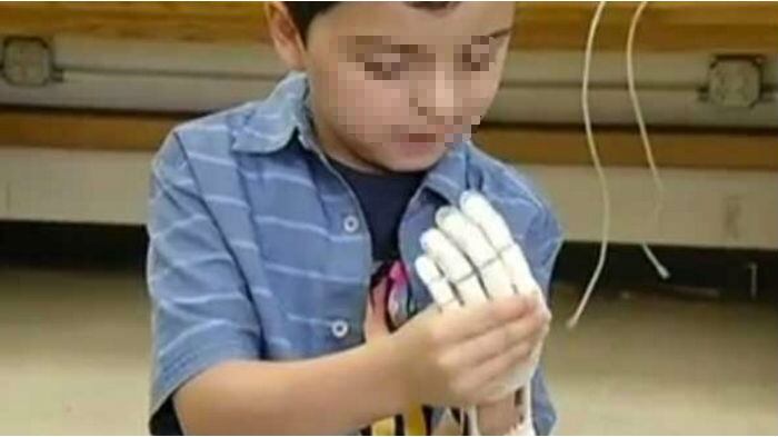 Un niño de 6 años nacido sin la mano izquierda tiene ahora una, gracias a su hermano mayor y un maestro de secundaria que usaron una impresora de 3D para crear una prótesis.