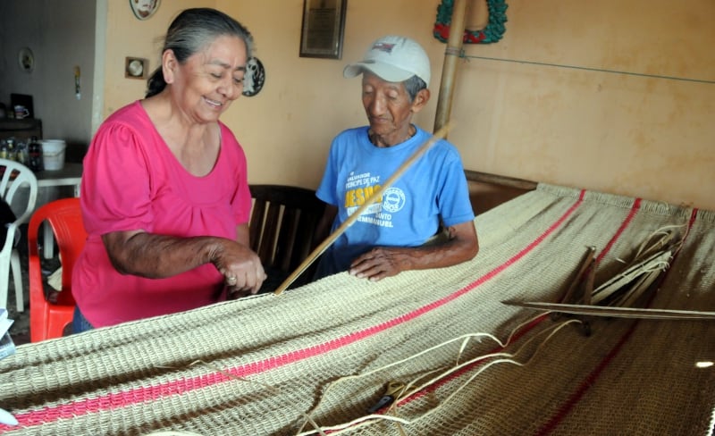 Con una aguja de madera de unos 50 centímetros de largo y 2 de diámetro, Leticia Morán Salazar, de 75 años, demuestra destreza para entrelazar hilachas de paja. Lo hace con fuerza, rapidez y habilidad. Con cada giro de la aguja traza pequeñas cuadrículas que son la base de una hamaca.