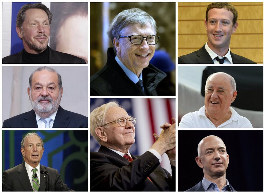 Las ocho personas más ricas del mundo, dueñas en total de casi la mitad de la riqueza del planeta, son todos hombres y han hecho su fortuna mayormente en el área de tecnología. La mayoría son estadounidenses, uno es europeo y otro es mexicano. Varios han prometido donar todo a la caridad.