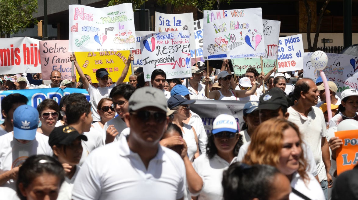 La avenida 9 de Octubre, en su tramo entre Lorenzo de Garaycoa y Malecón Simón Bolívar (oeste-este), fue el escenario donde este sábado se realizó la denominada marcha Por la Familia, cuyos asistentes protestaban contra supuestas propuestas de dos proyectos de ley para erradicar la violencia contra la mujer.