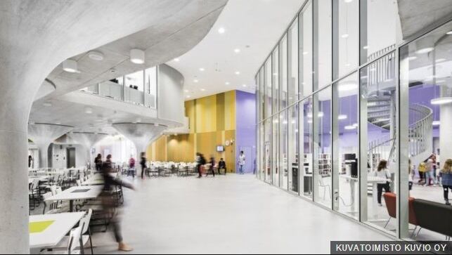 En las nuevas escuelas finlandesas, como esta realizada por Lahdelma & Mahlamäki Architects, las paredes se sustituyen por divisiones de cristal u otras movibles para crear múltiples espacios.