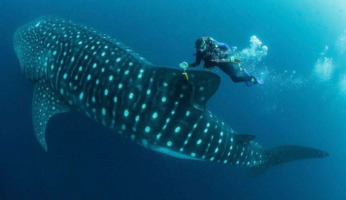 Un grupo de científicos buceó varias semanas con tiburones ballena durante el verano y el otoño en aguas de las islas Galápagos, que se cuentan entre los pocos lugares en el mundo donde probablemente se ve con regularidad a las hembras embarazada.