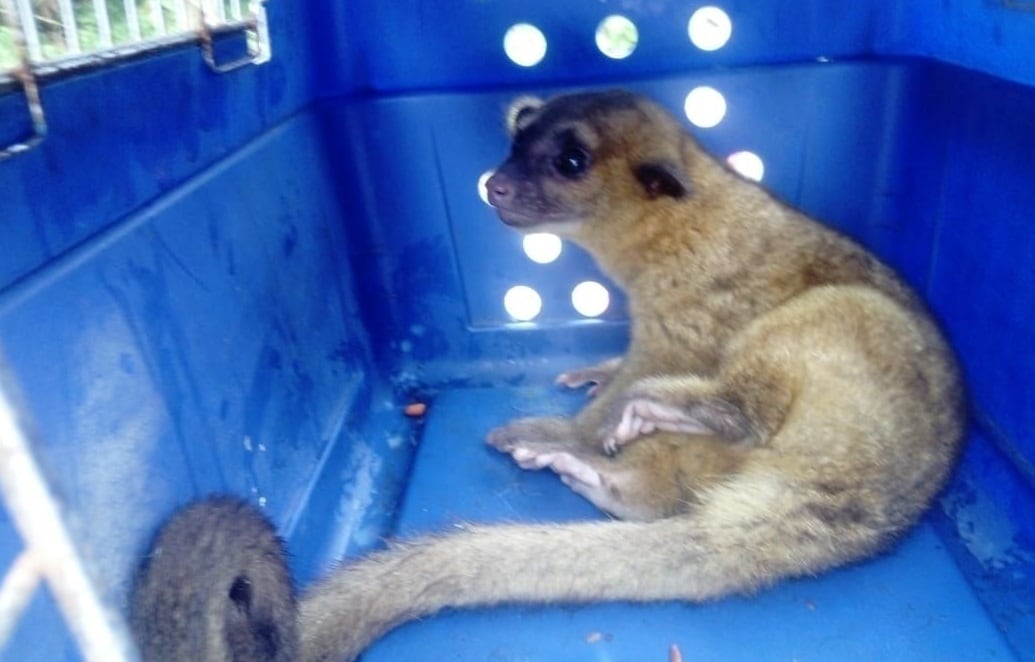 Mediante una llamada reportada al servicio integrado de seguridad ECU911 Esmeraldas, se rescató a un cusumbo (nombre científico: Potos flavus) en el sector de San Rafael, al sur de Esmeraldas.
